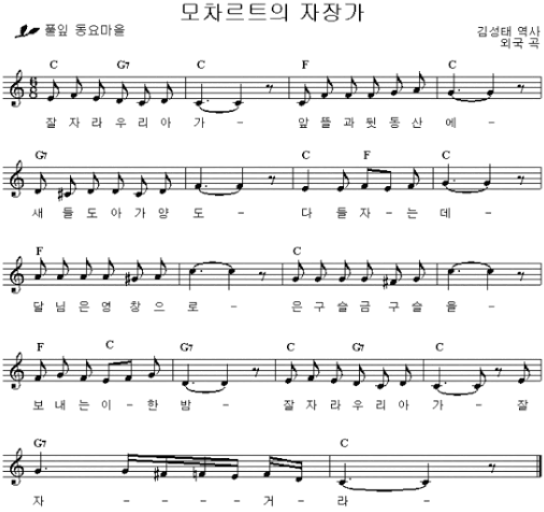 모차르트의 자장가 악보가 필요하신 분들을 위해 악보도 가져와봤어요.