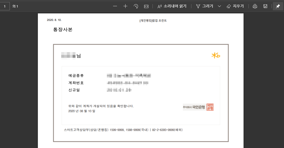 오늘은 국민은행 통장사본 출력방법에 대해 알아보겠습니다. 서류제출도 인터넷으로 올리는 경우가 많기 때문에 PDF 저장 방법까지 알아보도록 할게요.