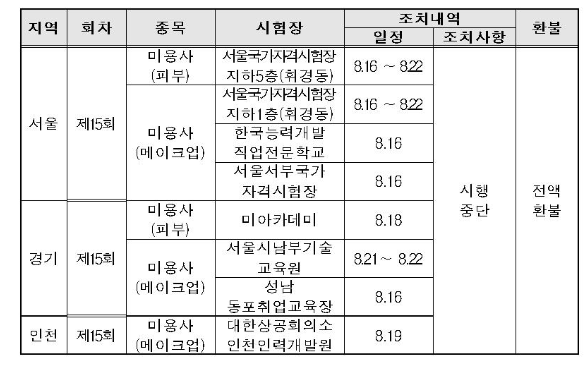 기사시험 연기는 미용분야 즉 피부미용사, 메이크업 미용사 등 서울에서 보는 실기시험에 대해 중단이 됩니다. 연기가 되었기 때문에 접수수수료는 전액환불된다고 하네요.