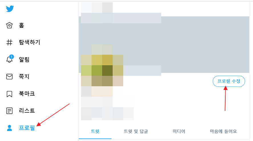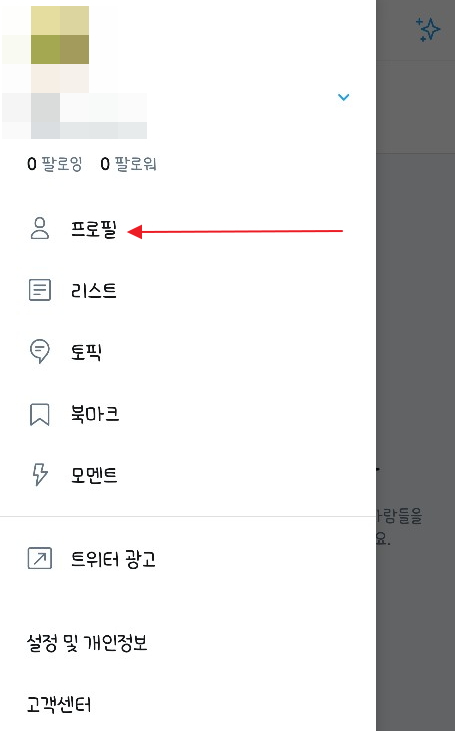 여러 메뉴들이 나오는데 트위터 이름을 바꾸려면 프로필로 들어갑니다. 이름이 아닌 사용자 아이디를 바꾸실 분들은 맨 아래 설정 및 개인정보로 들어가시면 되겠습니다.