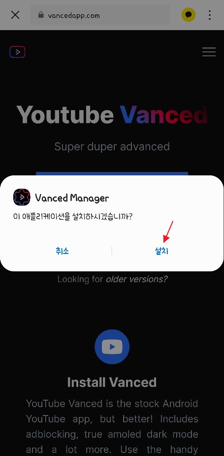 밴스드를 바로 받는게 아니라 일단은 밴스드 매니저를 다운받아줍니다. 설치를 눌러 apk를 설치해줍니다.