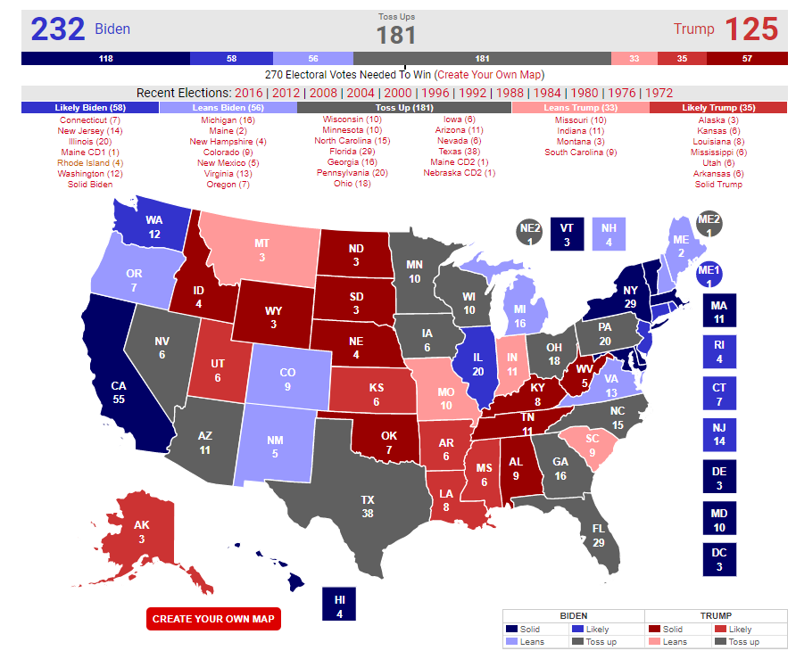 지지율로만 봤을 때는 트럼프보다 바이든 지지율이 높다고 볼 수 있습니다. 언론사 조사만봐도 거의 바이든이 우세하다고 나오죠.
