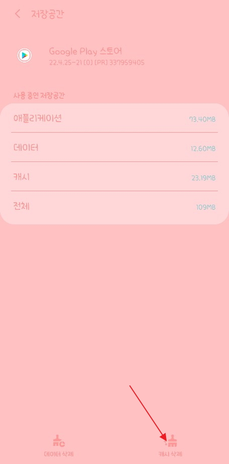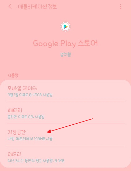 사용량에서 저장공간으로 들어갑니다. 그리고 캐시삭제를 해줍니다. 캐시 삭제 후 원하는 앱을 설치하시면 다운이 되실겁니다. 이런식으로 해도 안된다면 핸드폰을 재부팅해보시기바랍니다.
